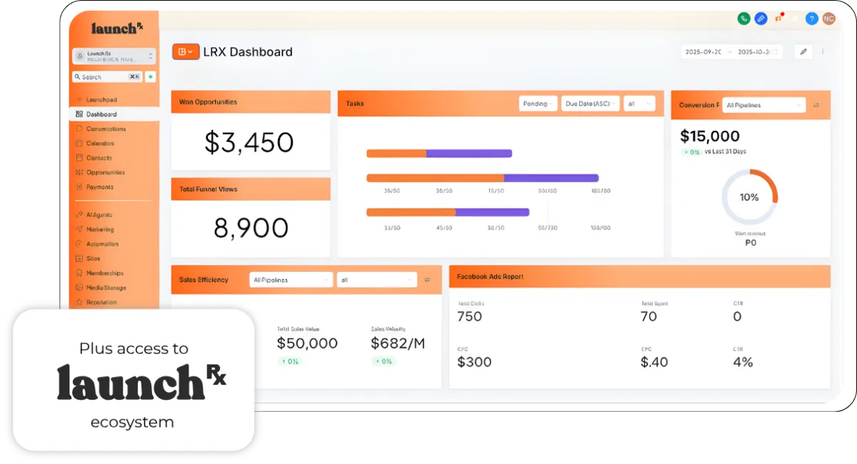With LaunchRx.io, you can finally stop stacking subscriptions and manage everything inside one clean, integrated system.