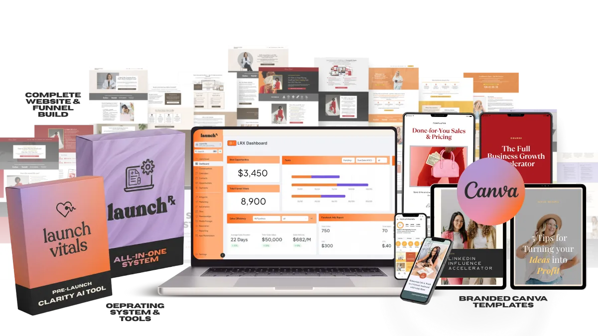 A full year of your all-in-one LaunchRx.io platform for funnels, websites, courses, memberships, email marketing, CRM, automations, and analytics. Plus you receive a new asset such as templates, strategies, tools, or launch guides to keep your business growing.